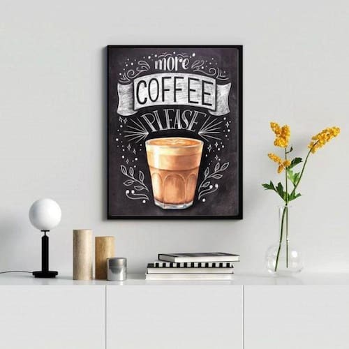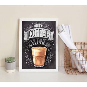 Quadro decorativo more coffee please 45x34cm Moldura: madeira preta Informações do produto tire todas as suas dúvidas no descritivo abaixo: decoração para quarto, sala, cozinha, escritório, área gourmet e muito mais. Chega de paredes vazias. Medidas - cada peça tem 45x34cm a3 . Material do papel - papel fotográfico brilhante de altíssima resolução acabamento - todos os quadros são acompanhados de uma película de acetato para proteção da imagem. - os quadros são embalados de forma segura com plástico bolha com camada dupla de acordo com o tamanho dos quadros. Garantia - garantia de 3 meses. Meu quadro chegou. Como posso fixá-lo Você precisa apenas de um martelo e um prego, pois os quadros já vão acompanhados de penduradores. Esta é a forma mais indicada. Caso prefira, você pode utilizar uma fita dupla face neste caso, sugerimos de alta qualidade para evitar que descole e seu quadro caia . Como posso limpar meu quadro A limpeza é feita como um móvel comum da sua casa. Apenas um pano seco ou espanador são suficientes para tal Ean: 7892825201044