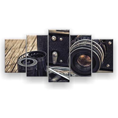 Quadro decorativo mosaico 5 peças câmera fotografia