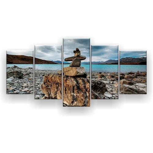 Quadro decorativo mosaico 5 peças pilha de pedras Descrição excelência-variedades