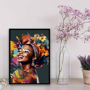 O Quadro Decorativo Mulher Arte Africana possui medidas de 45x34cm A3 .