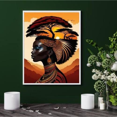 Quadro Decorativo Mulher Africana - Paisagem 60X48Cm