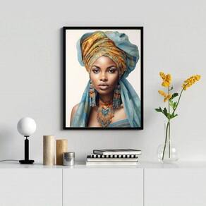 Quadro Decorativo Mulher Africana Turbante Azul 24x18cm
