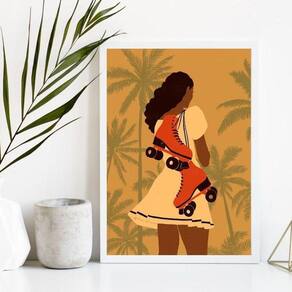 Quadro Decorativo Mulher Patins Boho 33X24Cm