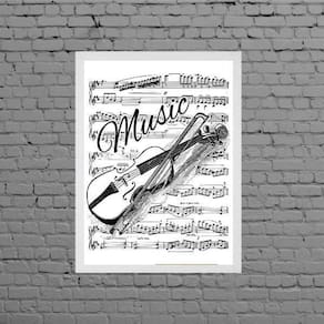 Quadro decorativo music violino 33x24cm - com vidro Moldura: madeira preta Informações do produto tire todas as suas dúvidas no descritivo abaixo: decoração para quarto, sala, cozinha, escritório, área gourmet e muito mais. Chega de paredes vazias medidas - cada peça tem 33x24cm a4 . Material do papel - papel fotográfico brilhante de altíssima resolução acabamento - todos os quadros são acompanhados de vidro para proteção da imagem. - moldura em madeira maciça na cor preta e pendurador . - os quadros são embalados de forma segura com plástico bolha com camada dupla de acordo com o tamanho dos quadros. - de 3 meses. Meu quadro chegou. Como posso fixá-lo Você precisa apenas de um martelo e um prego, pois os quadros já vão acompanhados de penduradores. Esta é a forma mais indicada. Como posso limpar meu quadro A limpeza é feita como um móvel comum da sua casa. Apenas um pano seco ou espanador são suficientes para tal Ean: 7895142248907