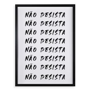 Quadro decorativo não desista 45x34cm Cor: moldura preta Informações do produto tire todas as suas dúvidas no descritivo abaixo: decoração para quarto, sala, cozinha, escritório, área gourmet e muito mais. Chega de paredes vazias. Medidas - cada peça tem 45x34cm a3 . Material do papel - papel fotográfico brilhante de altíssima resolução acabamento - todos os quadros são acompanhados de uma película de acetato para proteção da imagem. - os quadros são embalados de forma segura com plástico bolha com camada dupla de acordo com o tamanho dos quadros. - de 3 meses. Meu quadro chegou. Como posso fixá-lo Você precisa apenas de um martelo e um prego, pois os quadros já vão acompanhados de penduradores. Esta é a forma mais indicada. Caso prefira, você pode utilizar uma fita dupla face neste caso, sugerimos de alta qualidade para evitar que descole e seu quadro caia . Como posso limpar meu quadro A limpeza é feita como um móvel comum da sua casa. Apenas um pano seco ou espanador são suficientes para tal Marca: Não Informado