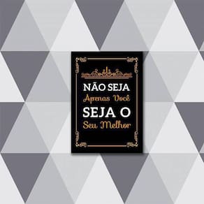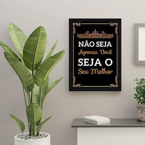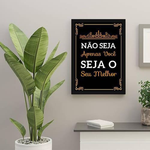 Quadro decorativo não seja apenas você, seja o seu melhor 34x23cm - moldura branca Tamanho: a4 20 x 30 Acabamento: película de acetato Moldura: madeira branca Informações do produto Tire todas as suas dúvidas no descritivo abaixo: Decoração para quarto, sala, cozinha, escritório, área gourmet e muito mais. Chega de paredes vazias Medidas - cada peça tem 34x23cm a4 . Material do papel - papel fotográfico brilhante de altíssima resolução Acabamento - todos os quadros são acompanhados de uma película de acetato para proteção da imagem. - moldura em madeira maciça na cor branca e pendurador móvel que pode ser retirado facilmente caso deseje fixar com fita dupla face. - os quadros são embalados de forma segura com plástico bolha com camada dupla de acordo com o tamanho dos quadros. - de 3 meses Meu quadro chegou. Como posso fixá-lo Você precisa apenas de um martelo e um prego, pois os quadros já vão acompanhados de penduradores. Esta é a forma mais indicada. Caso prefira, você pode utilizar uma fita dupla face neste caso, sugerimos de alta qualidade para evitar que descole e seu quadro caia . Como posso limpar meu quadro A limpeza é feita como um móvel comum da sua casa. Apenas um pano seco ou espanador são suficientes para tal