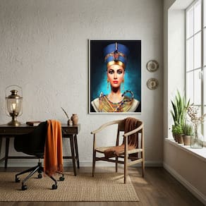 Quadro Decorativo Nefertiti Mulher Egípcia - 70x50cm - Cor: Moldura Branca