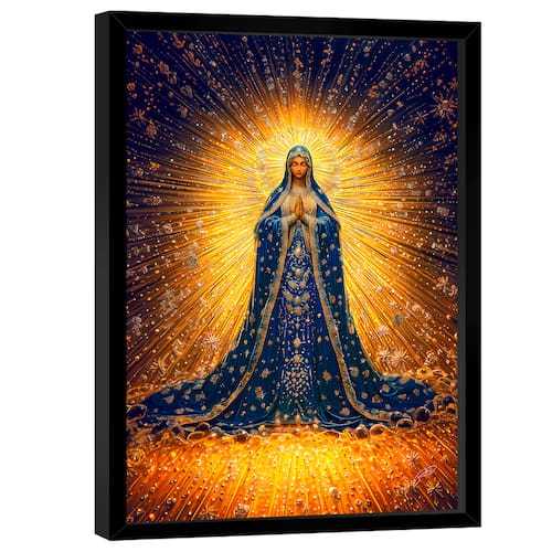 Quadro Decorativo Nossa Senhora Aparecida Luz Moldura Preta - 84x54cm -