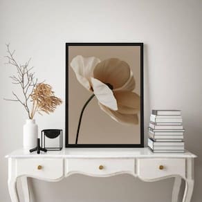 Quadro decorativo nuances bege - flor única 45x34cm - com vidro Cor: moldura preta Informações do produto tire todas as suas dúvidas no descritivo abaixo: decoração para quarto, sala, cozinha, escritório, área gourmet e muito mais. Chega de paredes vazias medidas - cada peça tem 45x34cm a3 . Material do papel - papel fotográfico brilhante de altíssima resolução acabamento - todos os quadros são acompanhados de vidro para proteção da imagem. - moldura em madeira maciça na cor preta ou branca conforme produto escolhido e pendurador . - os quadros são embalados de forma segura com plástico bolha com camada dupla de acordo com o tamanho dos quadros. - de 3 meses. Meu quadro chegou. Como posso fixá-lo Você precisa apenas de um martelo e um prego, pois os quadros já vão acompanhados de penduradores. Esta é a forma mais indicada. Como posso limpar meu quadro A limpeza é feita como um móvel comum da sua casa. Apenas um pano seco ou espanador são suficientes para tal