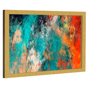 Quadro Decorativo Nuvens Abstratas Coloridas Moldura Dourada - 118x78cm -