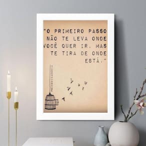 Quadro decorativo o primeiro passo 24x18cm - com vidro Cor: moldura branca Informações do produto tire todas as suas dúvidas no descritivo abaixo: decoração para quarto, sala, cozinha, escritório, área gourmet e muito mais. Chega de paredes vazias medidas - cada peça tem 24x18cm a5 . Material do papel - papel fotográfico brilhante de altíssima resolução acabamento - todos os quadros são acompanhados de vidro para proteção da imagem. - moldura em madeira maciça na cor preta ou branca conforme produto escolhido e pendurador . - os quadros são embalados de forma segura com plástico bolha com camada dupla de acordo com o tamanho dos quadros. Garantia - garantia de 3 meses. Meu quadro chegou. Como posso fixá-lo Você precisa apenas de um martelo e um prego, pois os quadros já vão acompanhados de penduradores. Esta é a forma mais indicada. Como posso limpar meu quadro A limpeza é feita como um móvel comum da sua casa. Apenas um pano seco ou espanador são suficientes para tal