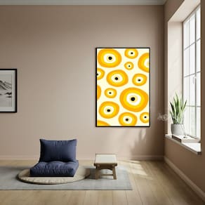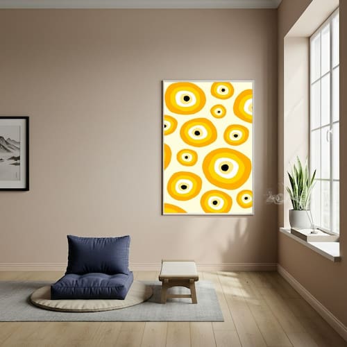 Quadro Decorativo Olho Grego ou Olho Turco Amarelo - 70x50cm - Cor: Moldura Branca