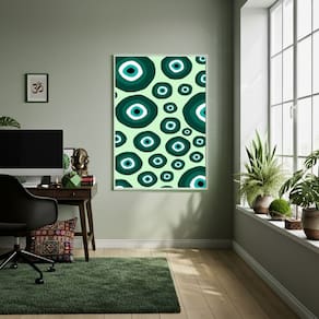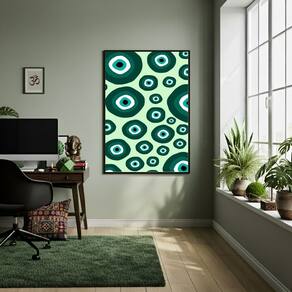 Quadro Decorativo Olhos Gregos Verdes - 70x50cm - Cor: Moldura Preta
