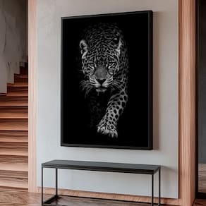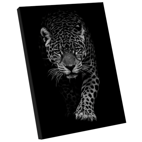 Quadro Decorativo Onça no Preto Borda Infinita - 84x54cm -