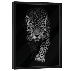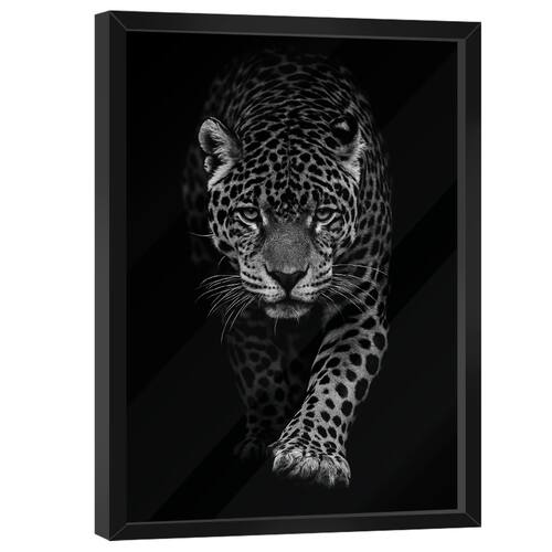 Quadro Decorativo Onça no Preto Moldura Preta e Vidro - 150x100cm -