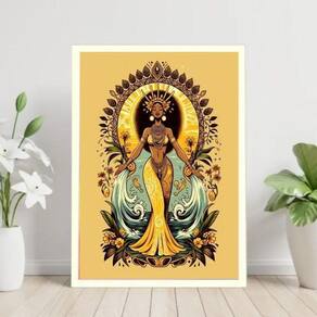 Quadro decorativo oxum - rainha água doce 60x48cm Moldura: madeira branca Informações do produto tire todas as suas dúvidas no descritivo abaixo: decoração para quarto, sala, cozinha, escritório, área gourmet e muito mais. Chega de paredes vazias medidas - cada peça tem 60x48cm . Material do papel - papel fotográfico brilhante de altíssima resolução acabamento - todos os quadros são acompanhados de vidro para proteção da imagem. - moldura em madeira maciça na cor preta ou branca conforme produto escolhido e pendurador. - paspatur branco com 7cm de largura - os quadros são embalados de forma segura com plástico bolha com camada dupla de acordo com o tamanho dos quadros. Garantia - garantia de 3 meses. Meu quadro chegou. Como posso fixá-lo Você precisa apenas de um martelo e um prego, pois os quadros já vão acompanhados de penduradores. Esta é a forma mais indicada. Como posso limpar meu quadro A limpeza é feita como um móvel comum da sua casa. Apenas um pano seco ou espanador são suficientes para tal