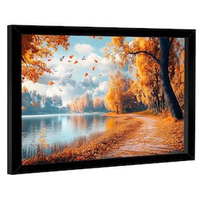 Quadro Decorativo Paisagem de Outono Cênica Moldura Dourada - 84x54cm -