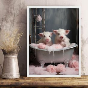 Quadro decorativo para banheiro - porquinhos 24x18cm Cor: moldura branca Informações do produto tire todas as suas dúvidas no descritivo abaixo: decoração para quarto, sala, cozinha, escritório, área gourmet e muito mais. Chega de paredes vazias medidas - cada peça tem 24x18cm a5 . Material do papel - papel fotográfico brilhante de altíssima resolução acabamento - todos os quadros são acompanhados de uma película de acetato para proteção da imagem. - os quadros são embalados de forma segura com plástico bolha com camada dupla de acordo com o tamanho dos quadros. Garantia - garantia de 3 meses. Meu quadro chegou. Como posso fixá-lo Você precisa apenas de um martelo e um prego, pois os quadros já vão acompanhados de penduradores. Esta é a forma mais indicada. Caso prefira, você pode utilizar uma fita dupla face neste caso, sugerimos de alta qualidade para evitar que descole e seu quadro caia . Como posso limpar meu quadro A limpeza é feita como um móvel comum da sua casa. Apenas um pano seco ou espanador são suficientes para tal Ean: 7891068678507