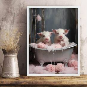 Quadro decorativo para banheiro - porquinhos 33x24cm Cor: moldura branca Informações do produto tire todas as suas dúvidas no descritivo abaixo: decoração para quarto, sala, cozinha, escritório, área gourmet e muito mais. Chega de paredes vazias medidas - cada peça tem 33x24cm a4 . Material do papel - papel fotográfico brilhante de altíssima resolução acabamento - todos os quadros são acompanhados de uma película de acetato para proteção da imagem. - os quadros são embalados de forma segura com plástico bolha com camada dupla de acordo com o tamanho dos quadros. Garantia - garantia de 3 meses. Meu quadro chegou. Como posso fixá-lo Você precisa apenas de um martelo e um prego, pois os quadros já vão acompanhados de penduradores. Esta é a forma mais indicada. Caso prefira, você pode utilizar uma fita dupla face neste caso, sugerimos de alta qualidade para evitar que descole e seu quadro caia . Como posso limpar meu quadro A limpeza é feita como um móvel comum da sua casa. Apenas um pano seco ou espanador são suficientes para tal
