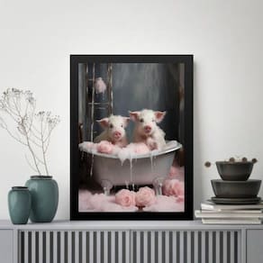Quadro decorativo para banheiro - porquinhos 45x34cm Cor: moldura preta Informações do produto tire todas as suas dúvidas no descritivo abaixo: decoração para quarto, sala, cozinha, escritório, área gourmet e muito mais. Chega de paredes vazias. Medidas - cada peça tem 45x34cm a3 . Material do papel - papel fotográfico brilhante de altíssima resolução acabamento - todos os quadros são acompanhados de uma película de acetato para proteção da imagem. - os quadros são embalados de forma segura com plástico bolha com camada dupla de acordo com o tamanho dos quadros. Garantia - garantia de 3 meses. Meu quadro chegou. Como posso fixá-lo Você precisa apenas de um martelo e um prego, pois os quadros já vão acompanhados de penduradores. Esta é a forma mais indicada. Caso prefira, você pode utilizar uma fita dupla face neste caso, sugerimos de alta qualidade para evitar que descole e seu quadro caia . Como posso limpar meu quadro A limpeza é feita como um móvel comum da sua casa. Apenas um pano seco ou espanador são suficientes para tal