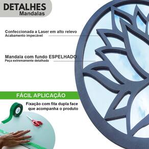 Quadro decorativo para Sala Mandala de Decoração Para Casa Cor: Geometrica Quadros Decorativos modelo: Mandalas Espelhadas Características: Tamanho: 40x40cm Profundidade: 10mm Material da : MDF Bi-Laminado Espelho: Acrílico Aplicação: Fita dupla face Já acompanha o produto para fixação Mandalas de fácil instalação e excelente custo benefício e qualidade. Ideal para decoração de ambientes da casa e áreas holísticas. Qualquer duvidas estamos à disposição através do campo de perguntas. Marca: Não Informado Ean: 7906585654726