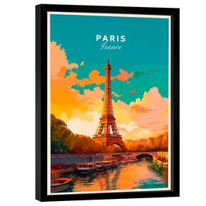 Quadro Decorativo Paris France Moldura Branca - 84x54cm -