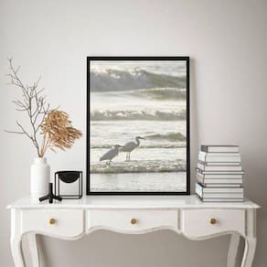 Quadro decorativo passarinhos brancos praia 24x18cm Moldura: madeira preta Informações do produto tire todas as suas dúvidas no descritivo abaixo: decoração para quarto, sala, cozinha, escritório, área gourmet e muito mais. Chega de paredes vazias medidas - cada peça tem 24x18cm a5 . Material do papel - papel fotográfico brilhante de altíssima resolução acabamento - todos os quadros são acompanhados de uma película de acetato para proteção da imagem. - os quadros são embalados de forma segura com plástico bolha com camada dupla de acordo com o tamanho dos quadros. Garantia - garantia de 3 meses. Meu quadro chegou. Como posso fixá-lo Você precisa apenas de um martelo e um prego, pois os quadros já vão acompanhados de penduradores. Esta é a forma mais indicada. Caso prefira, você pode utilizar uma fita dupla face neste caso, sugerimos de alta qualidade para evitar que descole e seu quadro caia . Como posso limpar meu quadro A limpeza é feita como um móvel comum da sua casa. Apenas um pano seco ou espanador são suficientes para tal Ean: 7890157041253