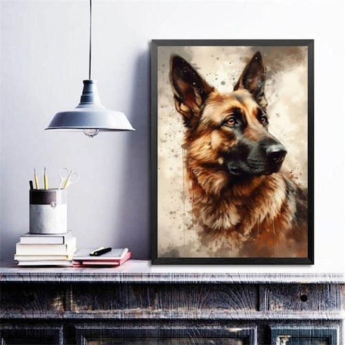 Quadro decorativo pastor alemão aquarela 45x34cm Moldura: madeira preta Informações do produto tire todas as suas dúvidas no descritivo abaixo: decoração para quarto, sala, cozinha, escritório, área gourmet e muito mais. Chega de paredes vazias. Medidas - cada peça tem 45x34cm a3 . Material do papel - papel fotográfico brilhante de altíssima resolução acabamento - todos os quadros são acompanhados de uma película de acetato para proteção da imagem. - os quadros são embalados de forma segura com plástico bolha com camada dupla de acordo com o tamanho dos quadros. Garantia - garantia de 3 meses. Meu quadro chegou. Como posso fixá-lo Você precisa apenas de um martelo e um prego, pois os quadros já vão acompanhados de penduradores. Esta é a forma mais indicada. Caso prefira, você pode utilizar uma fita dupla face neste caso, sugerimos de alta qualidade para evitar que descole e seu quadro caia . Como posso limpar meu quadro A limpeza é feita como um móvel comum da sua casa. Apenas um pano seco ou espanador são suficientes para tal Ean: 7890366704833