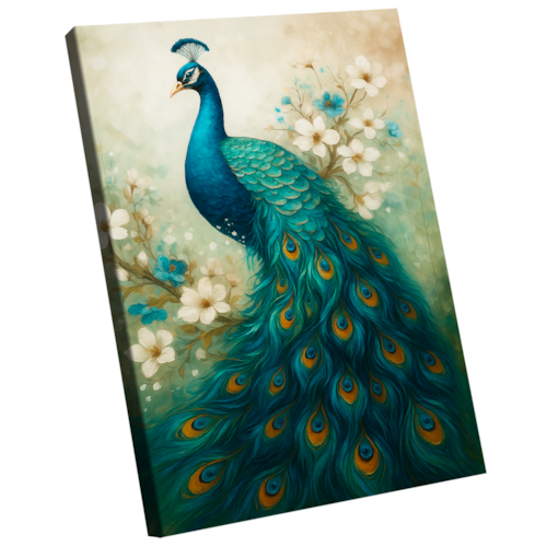 Quadro Decorativo Pavão Estilo Pintura Borda Infinita - 150x100cm -
