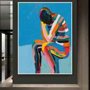 Quadro Decorativo Peso das Emoções Pintura Moldura Branca - 84x54cm -