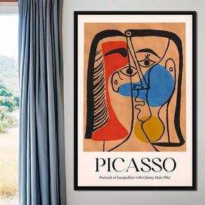 Quadro Decorativo Picasso Portrait Of Jaqueline With Glossy Hair Moldura Preta e Vidro - 150x100cm -