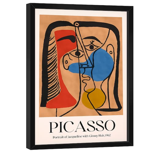 Quadro Decorativo Picasso Portrait Of Jaqueline With Glossy Hair Moldura Preta - 150x100cm -