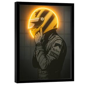 Quadro Decorativo Piloto Neon Amarelo Moldura Dourada - 60x40cm -