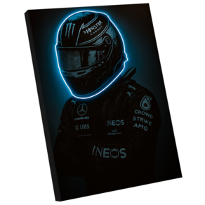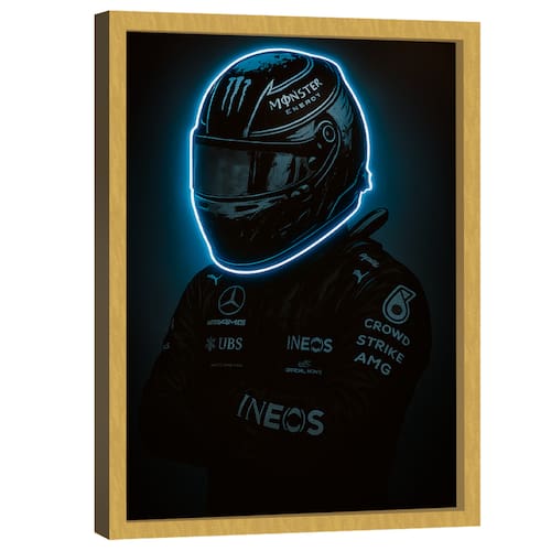 Quadro Decorativo Piloto Neon Azul Moldura Dourada - 84x54cm -