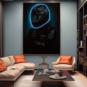 Quadro Decorativo Piloto Neon Azul Moldura Dourada - 60x40cm -