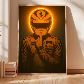 Quadro Decorativo Piloto Número 1 Neon Laranja