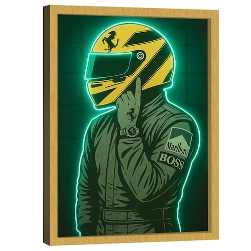 Quadro Decorativo Piloto Número 1 Neon Verde Moldura Dourada - 84x54cm -