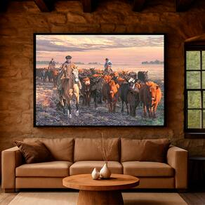 Quadro Decorativo Pintura Boiada Moldura Preta e Vidro - 180x105cm -