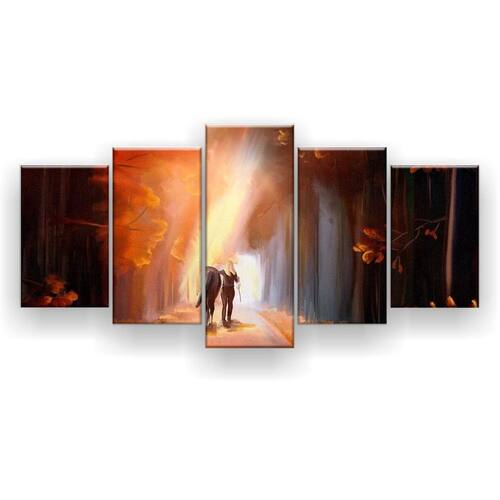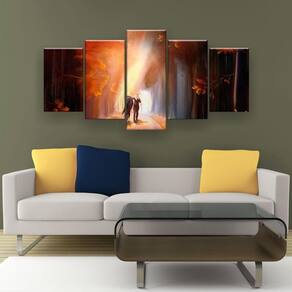 Tamanho total: 129cm comprimento X 61cm altura Peças menores: 25x40 cm Peças médias: 25x50 cm Peça central: 25x61 cm Espaçamento entre as peças: 1 cm A instalação é bem simples, pois utilizamos o método tradicional, pendurado com preguinhos. Acompanha um gabarito para facilitar a aplicação. A aplicação com o gabarito que enviamos é prática e rápida. Para limpeza, utilize apenas um pano umedecido com água sem produtos químicos para garantir a durabilidade. Nossos quadros são impressos em vinil semi-fosco de alta qualidade, aplicado em Madeira MDF com espessura de 6mm + base de madeira MDF de 9mm Total 15mm Não necessita de moldura, pois o acabamento das bordas/laterais é feito com a própria imagem impressa. Impressão em alta qualidade. Imagens em HD Alta Definição Mínimo de 12000 pixels. Marca: Imperio Dos Quadros