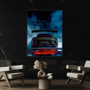 Quadro Decorativo Porsche GT3 RS Moldura Branca - 180x105cm -
