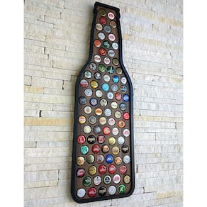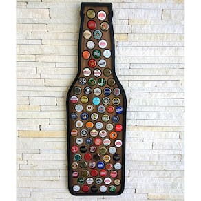 Feito em MDF bilaminado de 6mm, o Quadro Decorativo De Porta Tampinhas Garrafa Decorato - 64Un possui dimensões de 62cm de largura x 20cm de altura x 3,5cm de profundidade. Sua temática é voltada para a cerveja, e ele conta com escrita em auto relevo com letras coladas uma a uma.
