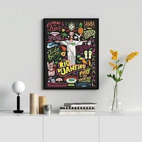 Quadro decorativo poster rio de janeiro 24x18cm Moldura: madeira branca Informações do produto tire todas as suas dúvidas no descritivo abaixo: decoração para quarto, sala, cozinha, escritório, área gourmet e muito mais. Chega de paredes vazias medidas - cada peça tem 24x18cm a5 . Material do papel - papel fotográfico brilhante de altíssima resolução acabamento - todos os quadros são acompanhados de uma película de acetato para proteção da imagem. - os quadros são embalados de forma segura com plástico bolha com camada dupla de acordo com o tamanho dos quadros. Garantia - garantia de 3 meses. Meu quadro chegou. Como posso fixá-lo Você precisa apenas de um martelo e um prego, pois os quadros já vão acompanhados de penduradores. Esta é a forma mais indicada. Caso prefira, você pode utilizar uma fita dupla face neste caso, sugerimos de alta qualidade para evitar que descole e seu quadro caia . Como posso limpar meu quadro A limpeza é feita como um móvel comum da sua casa. Apenas um pano seco ou espanador são suficientes para tal Ean: 7896839464570