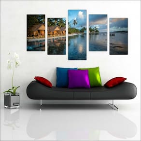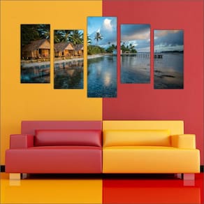 Quadro Decorativo Praia Mar Casa Mosaico 5 Peças