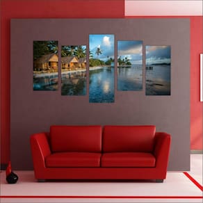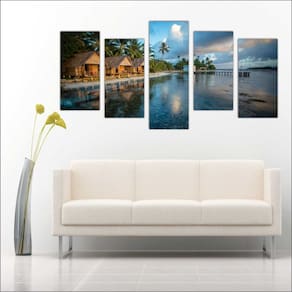 Quadro mosaico com 5 peças Tamanho total 127 cm X 63 cm colocado na parede com espaçamento de 3 cm entre cada peça. Tamanhos Específico Dos Quadros 4 quadros 23 cm x 46 cm 1 quadro 23 cm x 63 cm Qualidade Do Quadro / Impressão e Acabamento - Qualidade Fotográfica Da Imagem. - Material: Quadros impressos em adesivo com qualidade fotográfica, aplicado em MDF com espessura de 12 mm, com acabamentos laterais em preto fosco. - Quadro pronto para colocação na parede. Conteúdo da embalagem: Quadro completo com 5 peças. Ean: 7599681869707