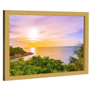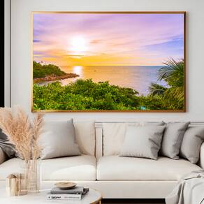 Quadro Decorativo Praia Nascer do Sol Moldura Preta e Vidro - 118x78cm -