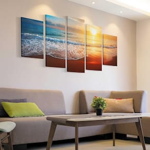 Quadro mosaico em 5 partes O verdadeiro quadro decorativo de parede, lindo e que dispensa moldura Por que comprar um quadro com bordas infinitas Esqueça as bordas brancas com as bordas infinitas, você terá a continuidade da imagem impressa nas bordas laterais do seu quadro, garantindo um efeito de preenchimento melhor na sua decoração, uma adição de cores vistas por diversos ângulos e ainda ganha a ilusão de perspectiva no seu ambiente de 3d Você terá um acabamento perfeito para facilitar o seu processo de decoração nossas telas em canvas têm impressão contínua, ou seja, até as laterais do chassi, o que entrega à peça um diferenciado toque de sofisticação e luxo, tornando esses quadros as peças chave na hora de finalizar o seu projeto. Trabalhamos apenas com matéria prima de , ou seja, qualidade, acabamento, durabilidade deste produto. Quadro mosaico em 5 partes Tamanho: pequeno Tamanho total: 118cm comprimento x 65cm altura 1 peça central: 22x65 cm 2 peças laterais: 22x55 cm 2 peças laterais: 22x40 cm Recomendamos que deixe um espaço de 2 cm entre as telas. Outros tamanhos, consulte Descrição detalhada do produto : Bordas: Nossos quadros têm impressão contínua nas laterais, dando um toque 3d Sem necessidade de moldura. Instalação: Recomendamos a instalação com pregos ou parafusos e buchas, deixando a ponta para que se pendure o quadro utilizando o fundo da própria estrutura do quadro. Ean: 7898039874821