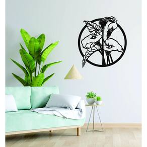 Quadro Decorativo Preto Mdf Flor Copo De Leite 40X20Cm