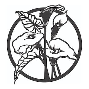 Quadro Decorativo Preto Mdf Flor Copo De Leite 40X20Cm