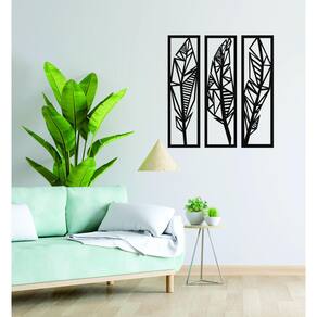 Quadro Decorativo Preto Mdf Folhas De Bananeira 40X20Cm