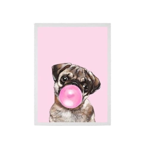 Quadro decorativo pug bubble gum 24x18cm Moldura: madeira branca Informações do produto Decoração para quarto, sala, cozinha, escritório, área gourmet e muito mais. Chega de paredes vazias Medidas - cada peça tem 24x18cm a5 . Material do papel - papel fotográfico brilhante de altíssima resolução Acabamento - todos os quadros são acompanhados de uma película de acetato para proteção da imagem. - Os quadros são embalados de forma segura com plástico bolha com camada dupla de acordo com o tamanho dos quadros. - de 3 meses. Meu quadro chegou. Como posso fixá-lo Você precisa apenas de um martelo e um prego, pois os quadros já vão acompanhados de penduradores. Esta é a forma mais indicada. Caso prefira, você pode utilizar uma fita dupla face neste caso, sugerimos de alta qualidade para evitar que descole e seu quadro caia . Como posso limpar meu quadro A limpeza é feita como um móvel comum da sua casa. Apenas um pano seco ou espanador são suficientes para tal Ean: 7895142189392